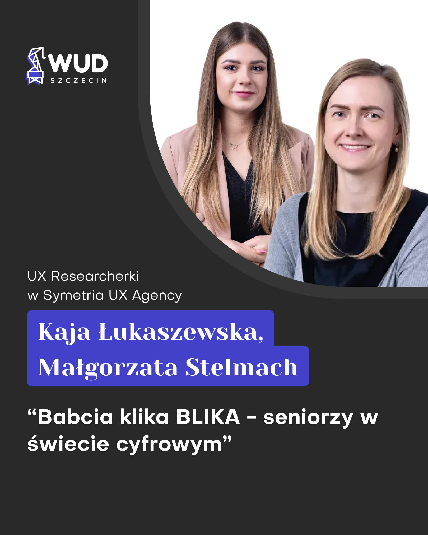Małgorzata Stelmach i Kaja Łukaszewska z Symetria UX Agency skupią się na badaniach jakościowych i inkluzywności. Ich prelekcja "Babcia klika BLIKA" to esencja praktycznej empatii w projektowaniu. Opowiedzą o barierach, obawach i strategiach radzenia sobie, jakie rozwijają seniorzy w cyfrowym świecie. Odkryj, jak Twoje projekty mogą stać się bardziej przyjazne i dostępne dla tej rosnącej grupy użytkowników.
